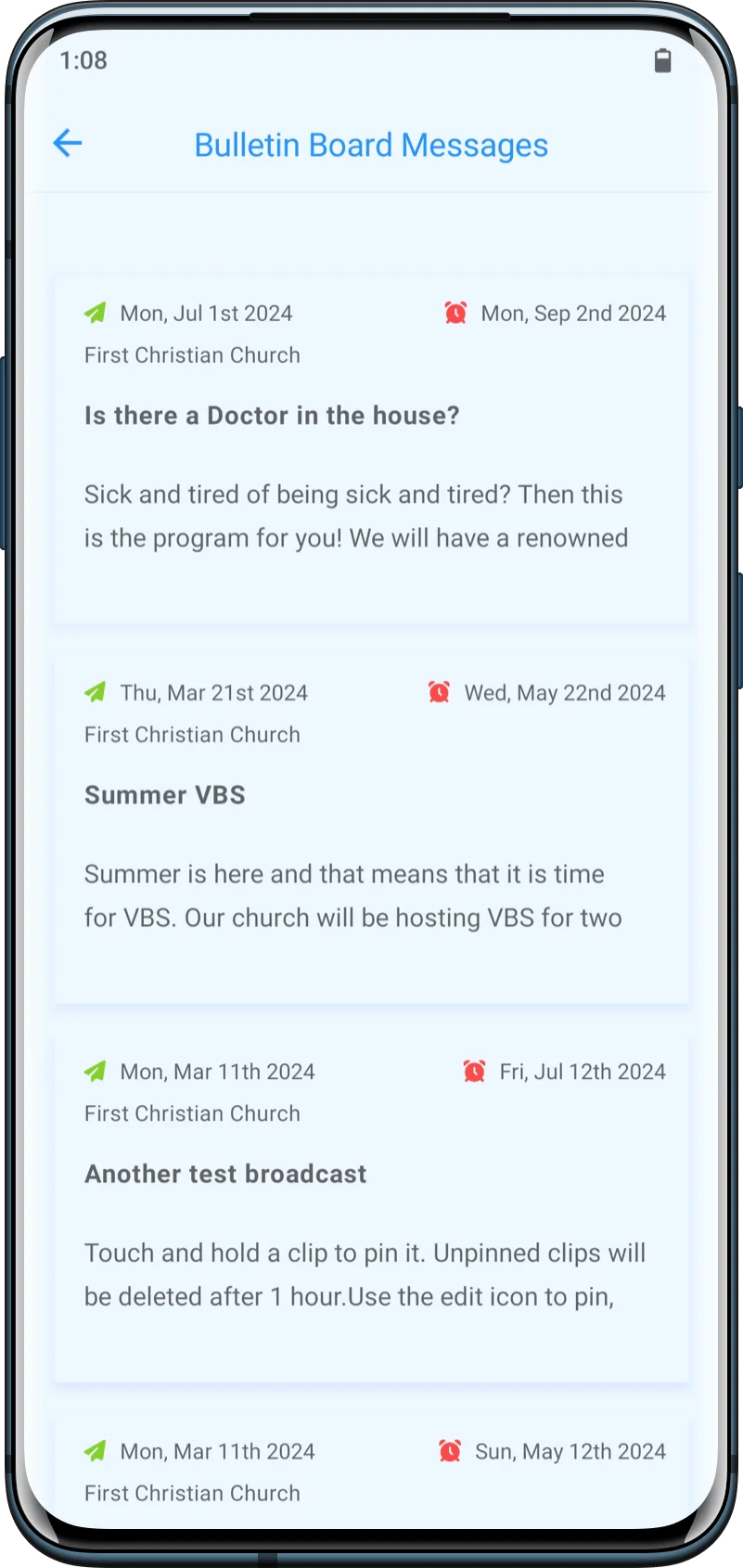 Add upcoming church events to the calendar. GenesisApp will automatically sync phone calendars of all members.